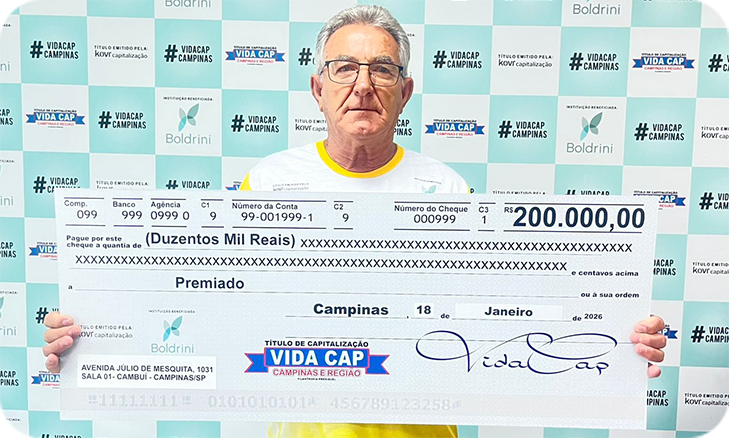 Realize seus sonhos e mude de vida comprando o título de capitalização filantropia premiável Vida Cap em um dos pontos de venda espalhados por Campinas e região, ou pelo aplicativo para smartphones, Android e iOS.